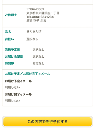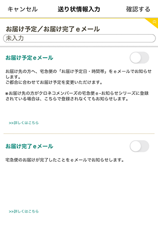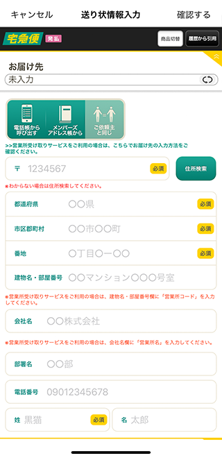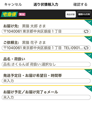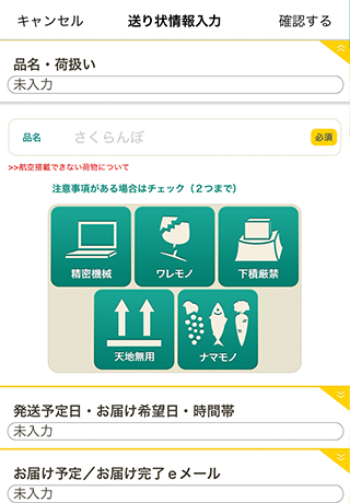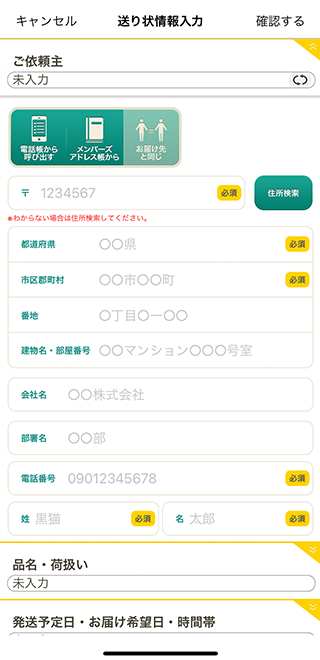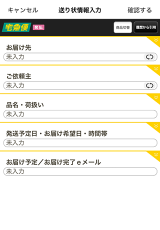 4.送り状情報を入力します。それぞれの項目にタッチすると入力画面が表示されます。