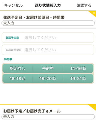 お届け希望日を入力する場合は、発送予定日の入力が必須です。