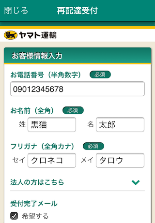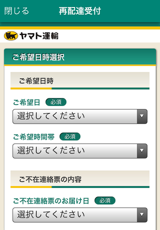 4.ご希望日、時間帯、ご不在連絡票のお届け日、ご要望などを入力します。