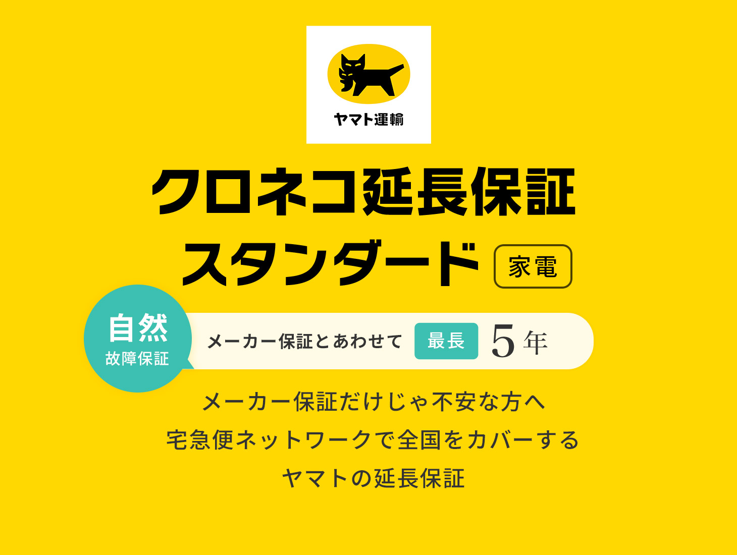 クロネコ延長保証スタンダード家電 自然故障保証 メーカー保証とあわせて最長5年 メーカー保証だけじゃ不安な方へ 宅急便ネットワークで全国をカバーする ヤマトの延長保証
