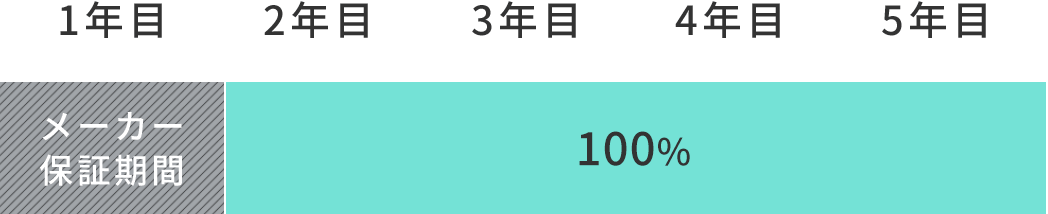 1年目 メーカー保証期間 2年目 100% 3年目 100% 4年目 100% 5年目 100%