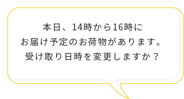 本日お届けするお荷物がある場合は、個数とお届け予定日時をお知らせします。