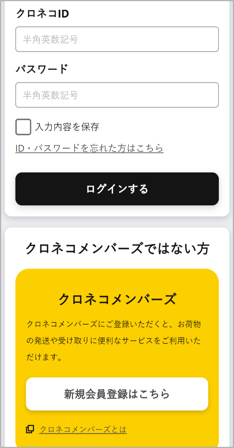 クロネコIDとパスワードを入力して「ログイン」してください。
