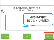 四角枠内に指でサインを記入し、「続ける」をタッチ