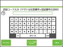 認証バーコードの下に記載の数字20桁(4桁毎に分けて表示)を続けて入力し、「続ける」をタッチ