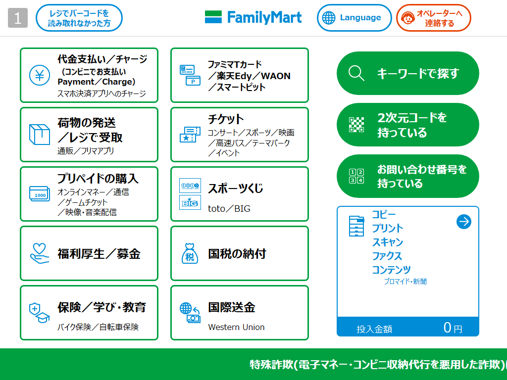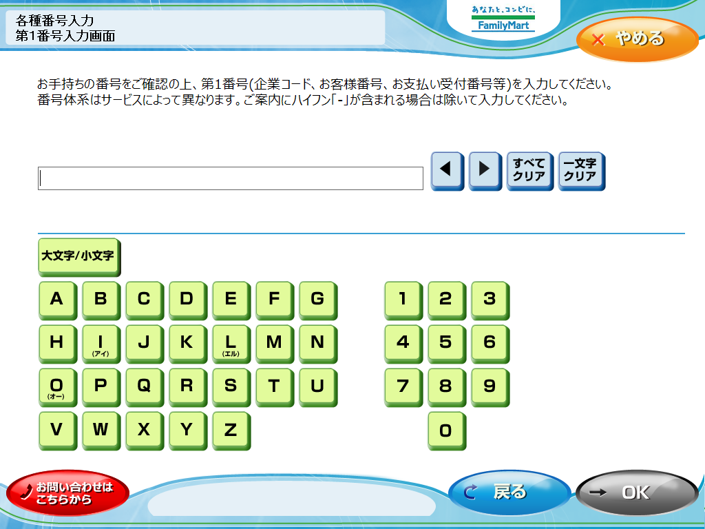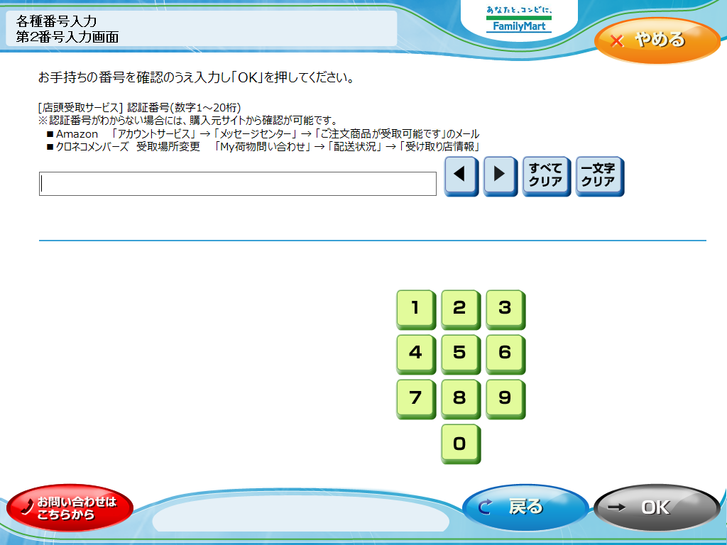 1. バーコードが表示できない場合やフィーチャーフォンをご利用の場合、店内にあるマルチコピー機で第1番号(送り状番号)と第2番号を入力し、「Mコピーサービス申込券」を発券して、レジでご提示ください。