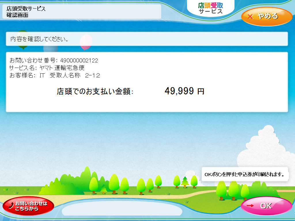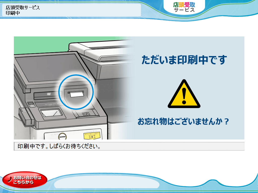 マルチコピー機より「Mコピーサービス申込券」が出力されるので、30分以内にレジに持っていき荷物を受取る