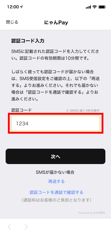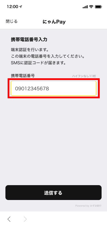 「にゃんPay」をタップ後、携帯電話番号などを登録
