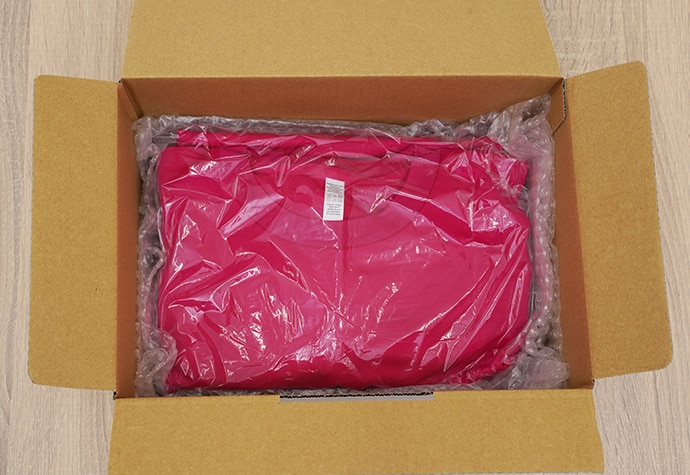 衣類を詰め終わったら、ダンボールを軽く揺すります。衣類が動かなくなるまで、周辺に緩衝材を敷き詰めてください。輸送中にしわ、折れ等がつく事を防げます。