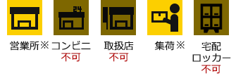 • お帰りの配送について、「営業所受け取りサービス」はご利用いただけませんが、ヤマト運輸営業所宛にご指定いただき、ヤマト運輸営業所で受け取ることは可能です。