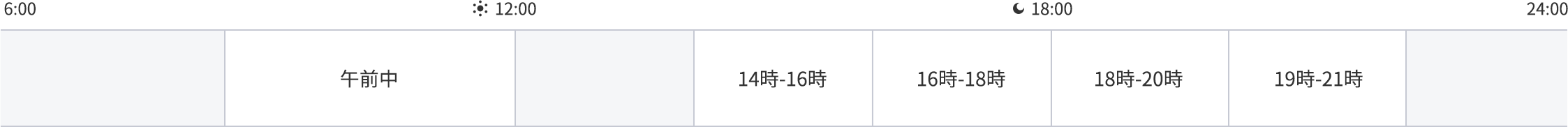 お届け指定ができる時間帯の表 午前中 14時-16時 16時-18時 18時-20時 19時-21時