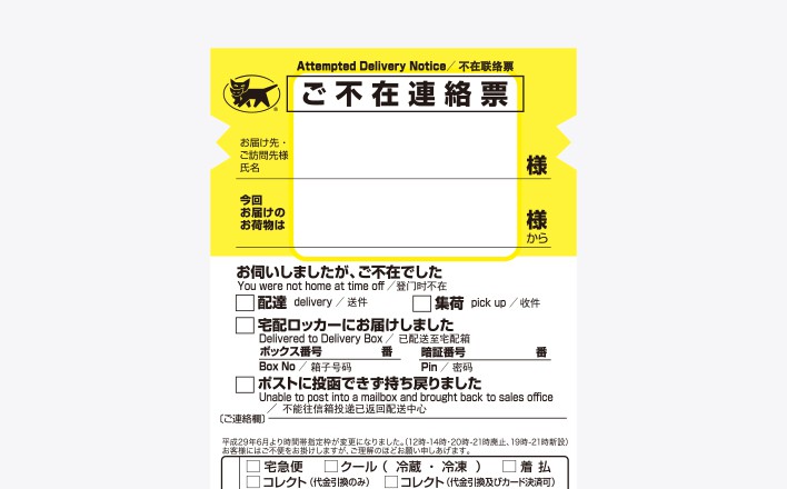 Information on how to read and use Attempted Delivery Notices as well as precautions regarding them.