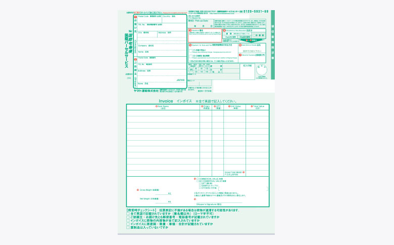 The following is an explanation of the waybill used when sending a parcel within Japan or overseas.