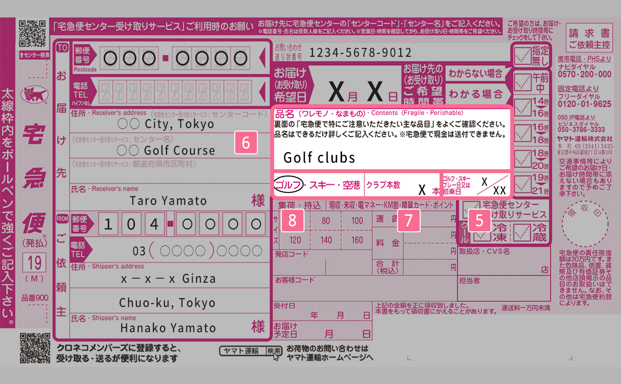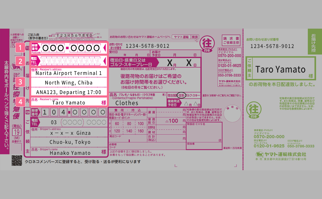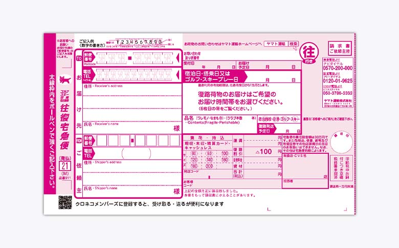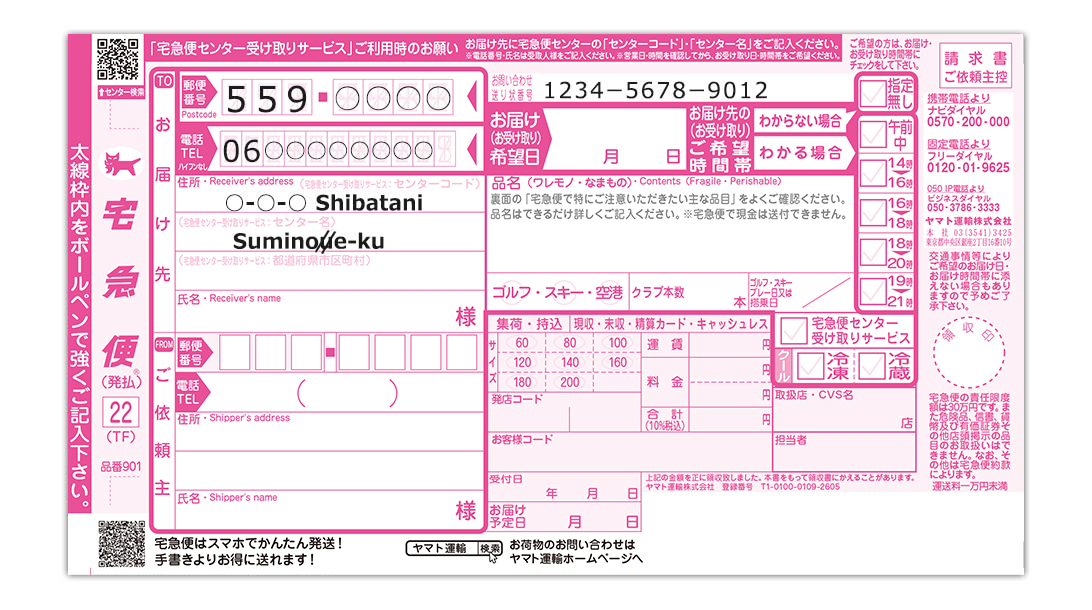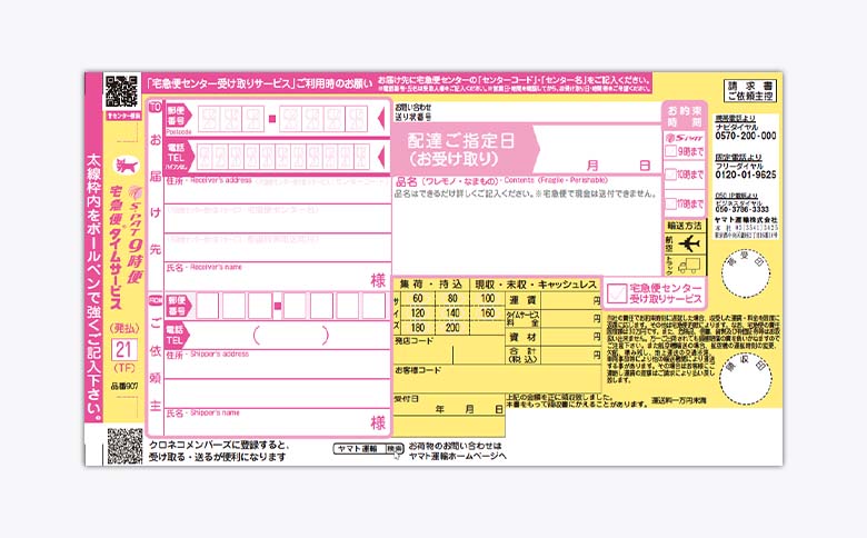 Waybills can be obtained at your nearby Yamato Transport Sales Office.
