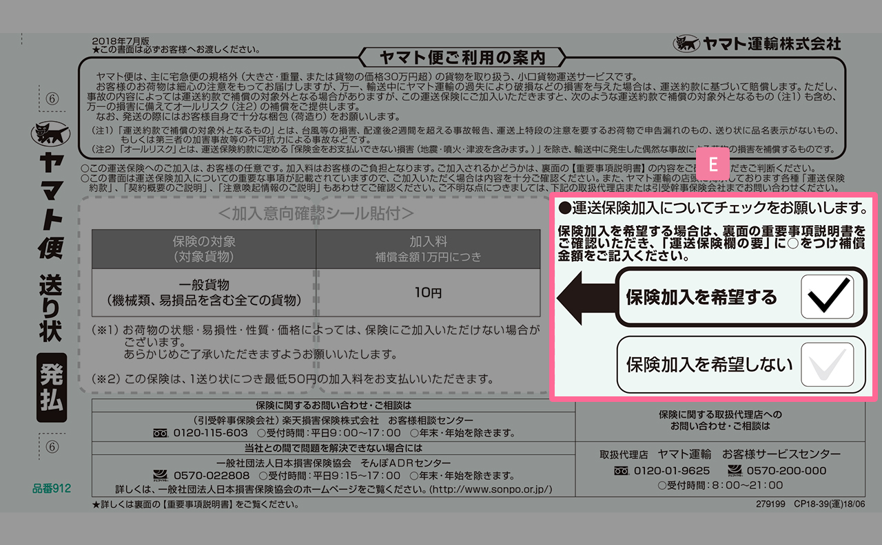 - *For more information regarding optional insurance, please refer to "Information Regarding Shipping Insurance Applications for Small Cargo" below.