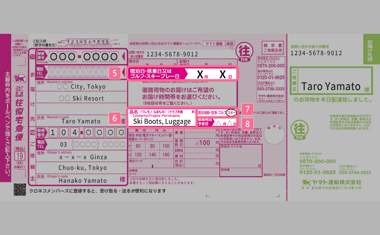 8Scheduled return shipping datePlease write the scheduled date on which parcels will be dropped off at the ski resort before the return trip.