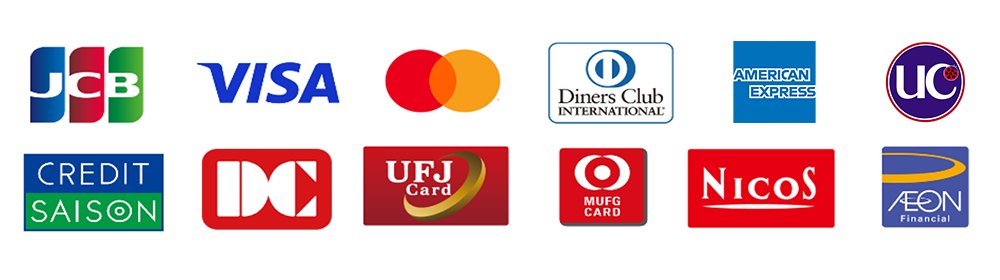 JCB・VISA・Master・Diners Club・AMERICAN EXPRESS・UC・CREDIT SAISON・DC・UFJ・MUFG・NICOS・AEON