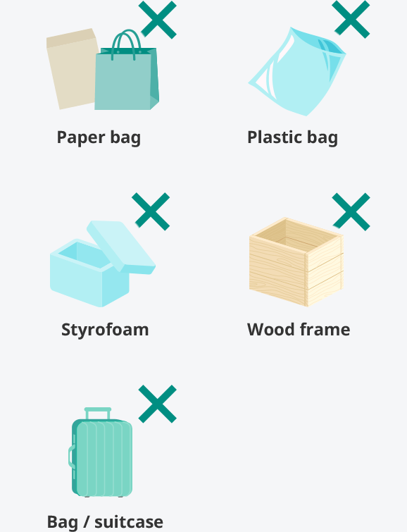 To prevent damage to parcels, please pack parcels using materials such as cardboard.