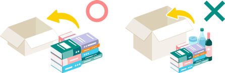 When packing in a cardboard box, place bottles vertical so that there are no gaps. Then, secure them with cushioning material to prevent moving.