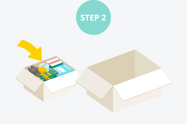 After placing the items in the box, secure them with cushioning material to prevent moving.