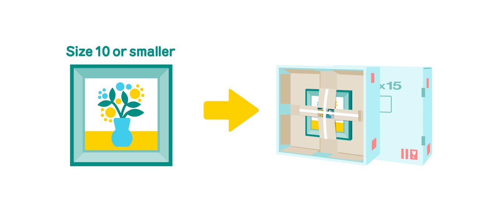 Pictures which are Size 10 or smaller can be sent using the special packing material "Art Box."
