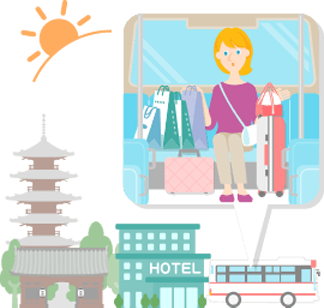 Enjoy sightseeing in comfort without the burden of carrying baggage. (Tourist information services are also available at the counter.)
