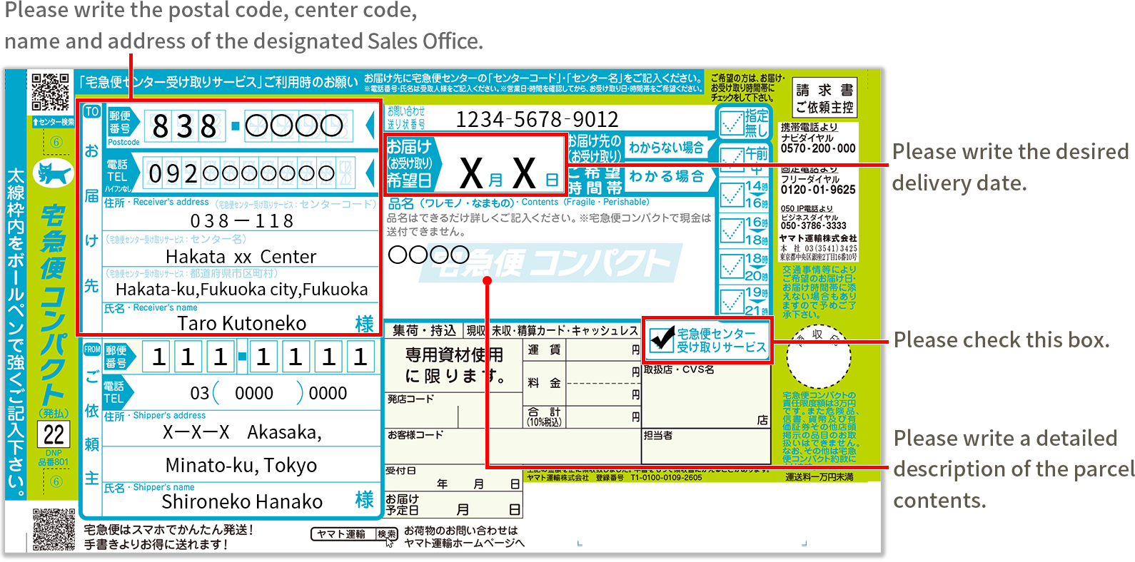 - Have a waybill issued at a Yamato Transport Sales Office