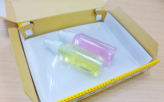 This dedicated pad uses a stretchable film to gently and firmly secure goods. Features a simple packing design in which it is only necessary to fold the cardboardbox. There is no need for excess cushioning materials.
