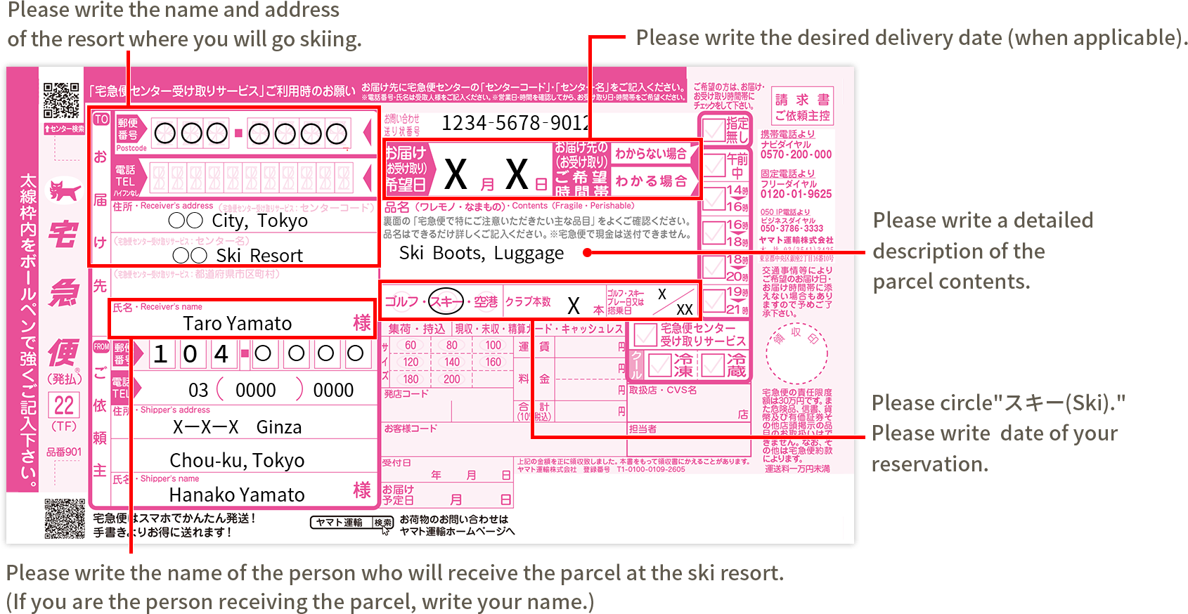 This service is available for customers who are sending parcels via TA-Q-BIN and can be used in all regions of Japan.