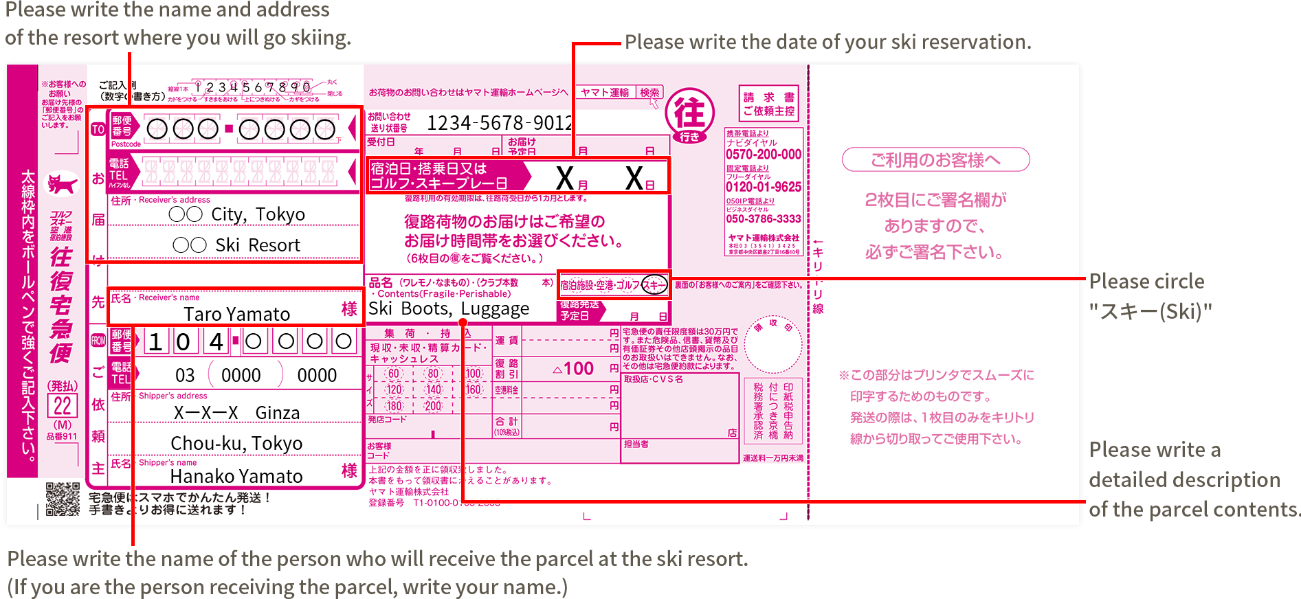 - For Ski TA-Q-BIN, each parcel is insured up to 300,000 JPY (tax included).