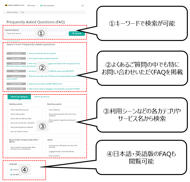 英語版:https://faq-en.kuronekoyamato.co.jp/
