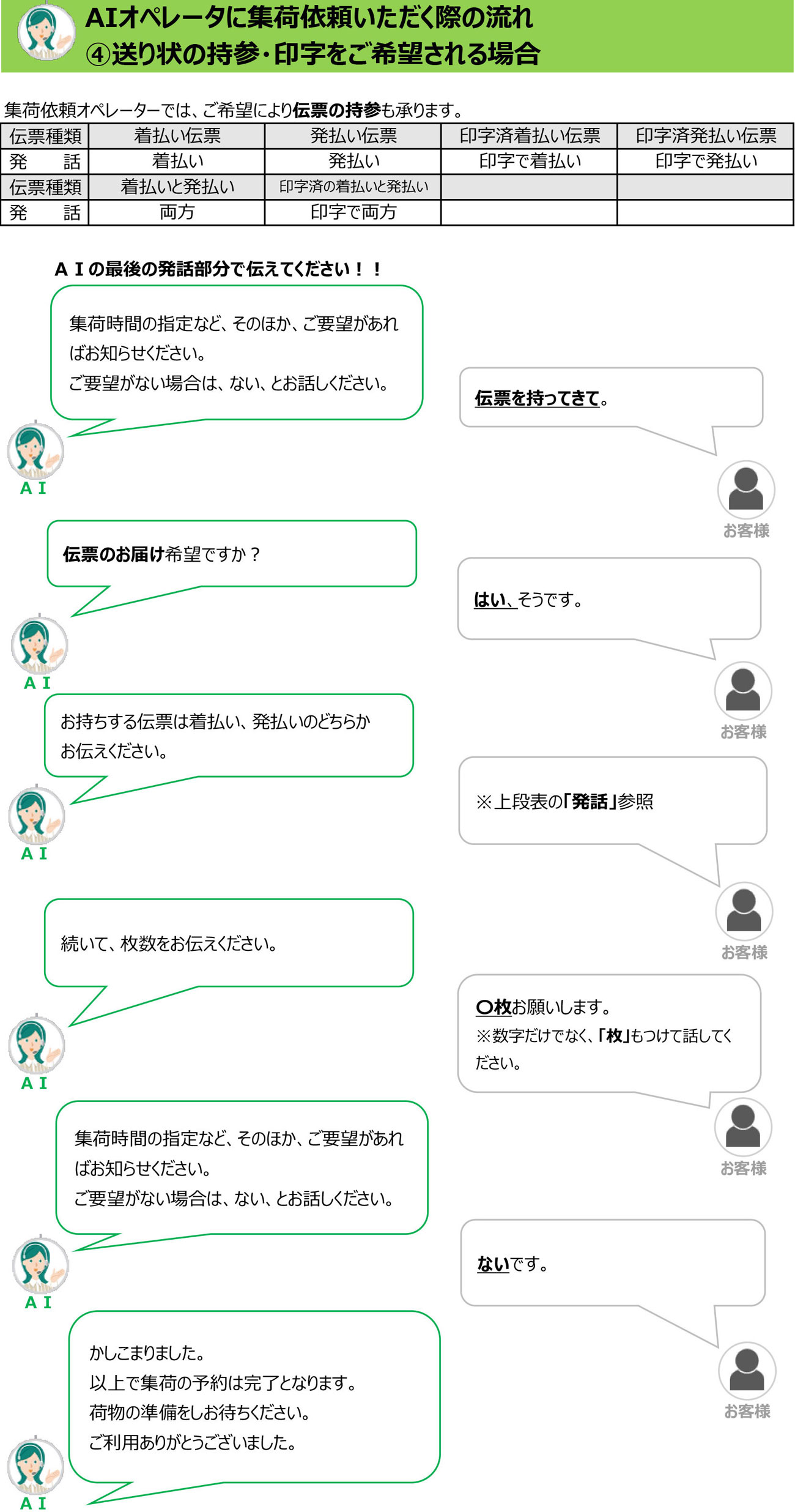 AIオペレータに集荷依頼いただく際の流れにつきましては、こちらをご参照ください。