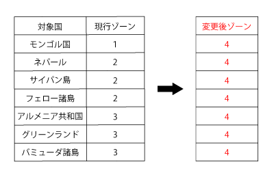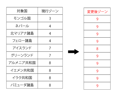 国際宅急便およびUPSワールドワイド・エクスプレス・セイバーのお届け先国・地域の分類(ゾーン)の一部変更について