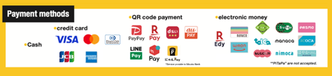 You can pay by cash, credit card, QR code, or electronic money.