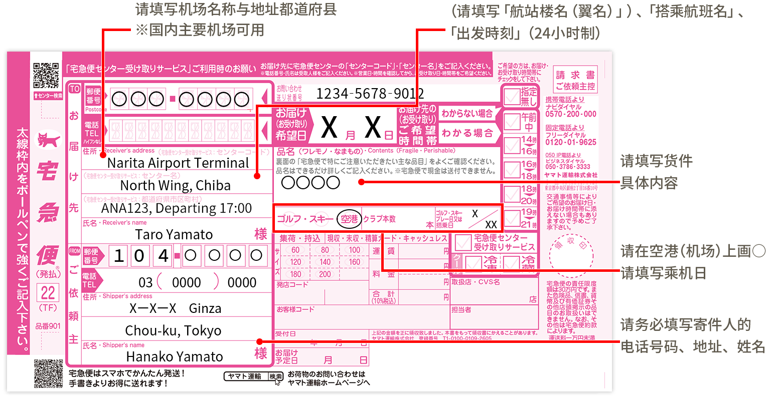 • 机场宅急便的责任限额为1件货件30万日元(含税)。