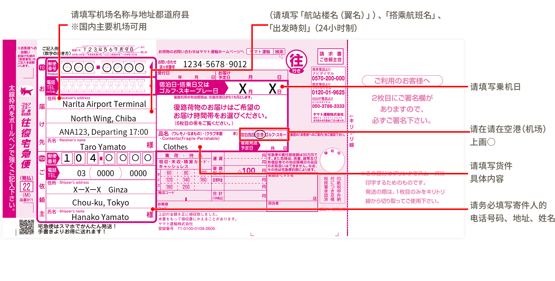 • 使用往返宅急便,回程时部分机场需机场手续费。(关西国际机场 [660日元])