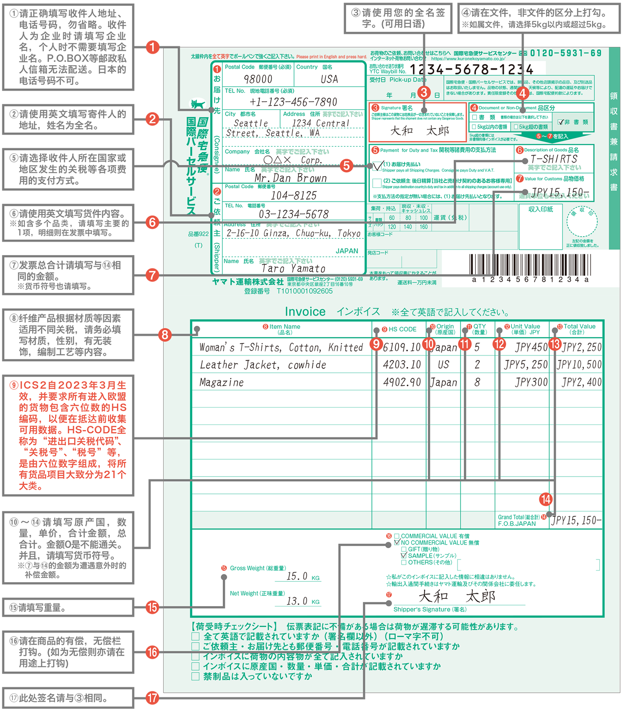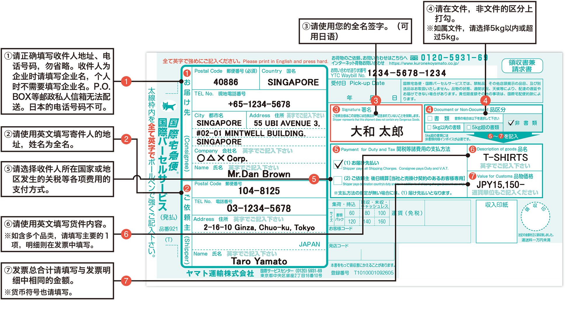寄送国际宅急便时所需的托运单由营业司机在取件时为您送来。您亦可在附近的「雅玛多运送营业所」获取。