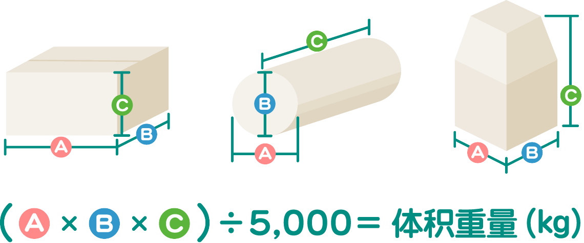 体积重量:货物体积每5,000cm3按1kg进行换算之后的重量