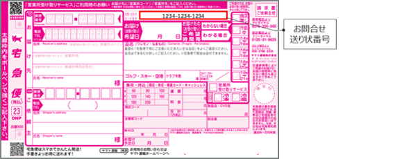お問い合わせ送り状番号の記載場所については下図を参照して下さい。